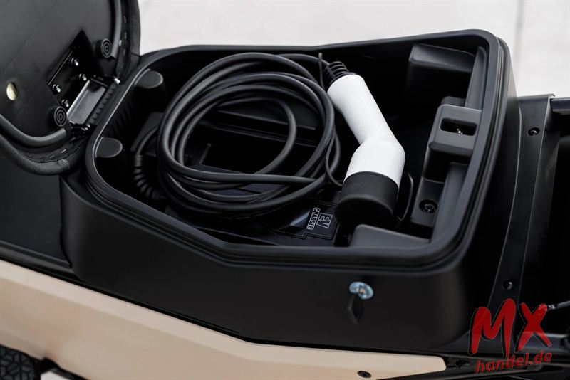 - Schnellladung: ca. 2 Std. auf 80 %, 3 Std. auf 100 % mit 3,3 kW-Ladeanschluss