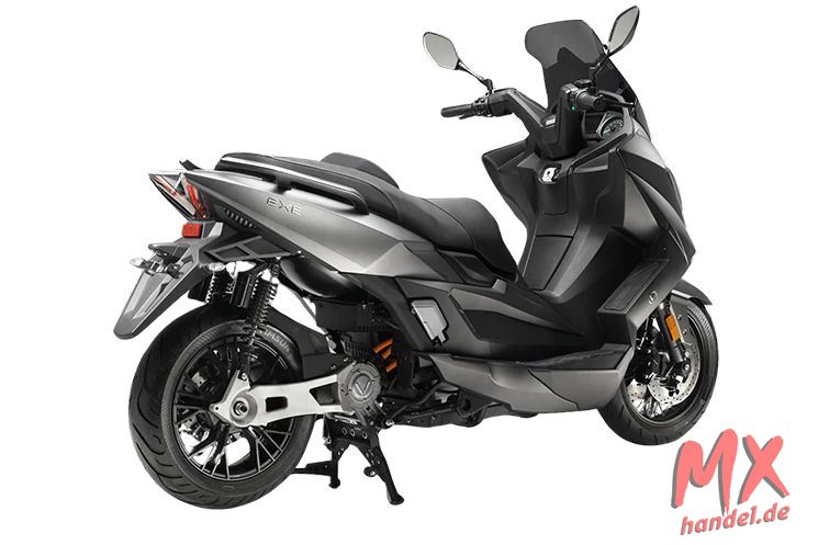 Mit drei Fahrmodi – Eco, Normal und Sport – passt sich die EXE mühelos deinem Fahrstil an. Das CBS-Bremssystem sorgt dabei jederzeit für maximale Sicherheit, während das stabile Fahrwerk mit Teleskopgabel und einstellbaren Federbeinen für Komfort auf jedem Untergrund sorgt.