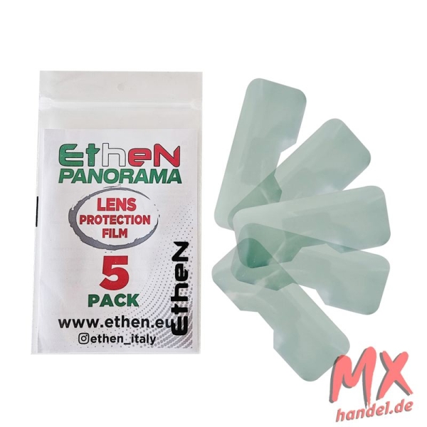 Linsenschutz-Set mit Klebefolie zum Aufbringen auf die Linsen. 5er-Pack. Kompatibel mit allen Linsen, auch Nicht-Ethen-Linsen. Wasserabweisend und kratzfest. Leicht zu reinigen und extrem langlebig. Sorgt für konstante Sicht während des gesamten Laufs. Gebrauchsanleitung inklusive.